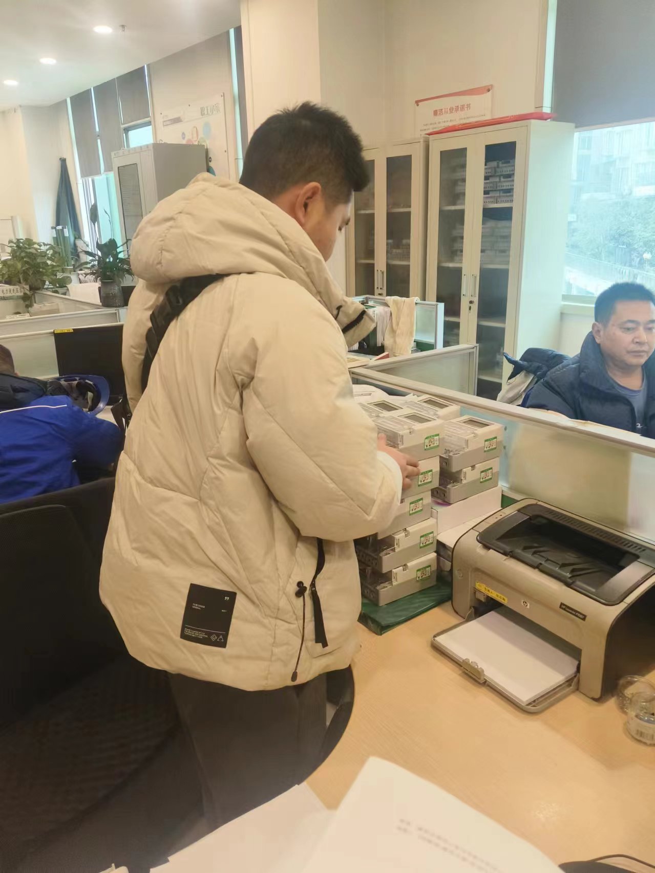 因金堂业主临时要求,限期完成终端更换,时间紧,任务重,此项工作开展面临人手紧缺。技术服务部杨鹏经理、工程部甘孜区域赵建平经理,工程部乐至区域霍江乐经理秉承“客户和企业就是共生关系,要摒弃甲方思维,多为客户着想。”的理念,三部门主动沟通,内部协调,互相支援,跨部门协作。协调工程部员工胡玉涛同志支援,协助杨鹏经理完成金堂业主工作要求。人事行政部新入职员工张川同志看到杨鹏经理在成都办公室更换终端,面对堆积如山的几箱终端,张川主动提出协助杨鹏经理进行更换。
